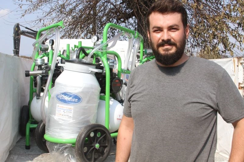 Yangında zarar gören hayvan sahiplerine ücretsiz süt sağma makinesi dağıtıyorlar
