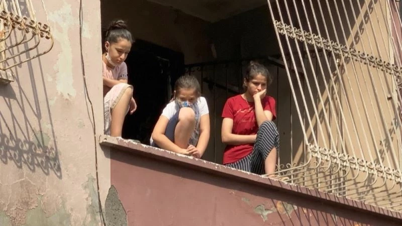 Yanan evden geriye kalanların belediye ekipleri tarafından traktöre yüklenerek götürülmesi ise evin balkonundakiler tarafından hüzünlü bakışlarla izlendi.