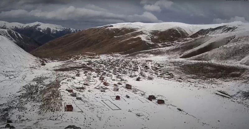 Rize’nin İkizdere ilçesine bağlı Gölyayla köyünde, 9 evin de kullanılamaz hale geldiği ve 1 evin zarar gördüğü yangın sonrası kar yağışının başlaması ile köy beyaza büründü.