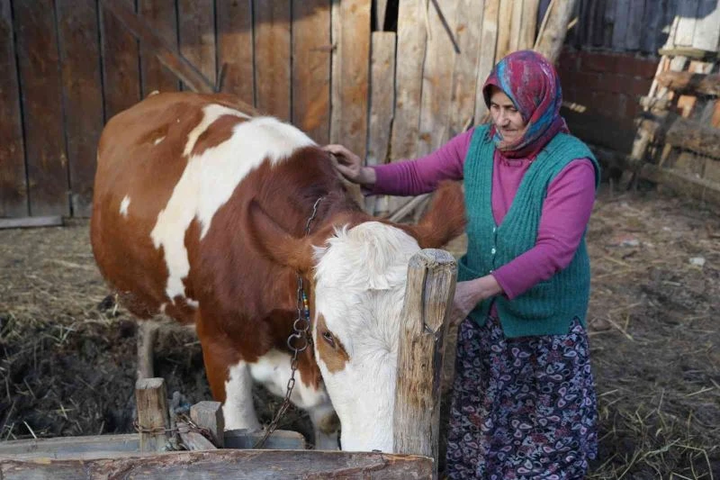 Kastamonu’nun merkez ilçesine bağlı Başören köyünde çıkan yangında ahırda bulunan hayvanlarını kurtaran kadın, evden başına tülbent bile alamadığını söyledi.