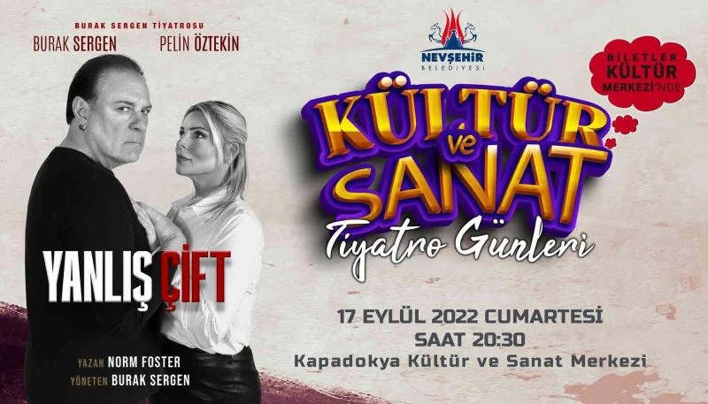 İlk kez Nevşehir’de sahnelenecek oyun için biletler Kapadokya Kültür ve Sanat Merkezi’nde satışa çıktı. Nevşehir Belediyesi Kültür ve Sosyal İşler Müdürlüğü tarafından düzenlenen ‘Tiyatro Günleri’ etkinliği muhteşem bir oyun ile başlayacak. Kaleme aldığı oyunları dünyanın çok sayıda ülkesinde sahnelenen ünlü yazar Norm Foster’in ‘Yanlış Çift’ adlı oyunu 17 Eylül Cumartesi akşamı Kapadokya Kültür ve Sanat Merkezi’nde sahnelenecek.