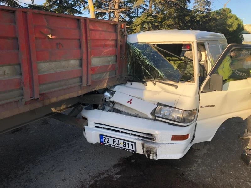 Edirne’nin Keşan ilçesinde sürücünün gözüne yansıyan güneş ışığı sebebiyle kontrolden çıkan araç, yol kenarında park halindeki kamyona çarptı. Kamyonun kasasının diğer aracın içine girdiği kazada can kaybı yaşanmadı.