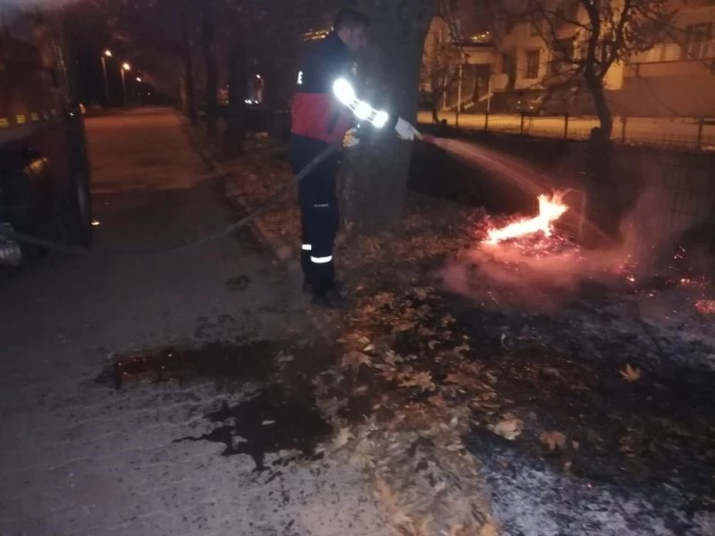 Edinilen bilgiye göre, akşam saatlerinde Yeni Mahalle yürüyüş yolu üzerinde kimliği belirsiz kişi ya da kişiler ağaçlardan dökülen kuru yaprakları yakıldı. Yangını fark eden mahalle sakinleri durumu itfaiye ekiplerine bildirdi. İhbar üzerine olay yerine gelen itfaiye ekipleri yangın ağaçlara sıçramadan söndürdü.
