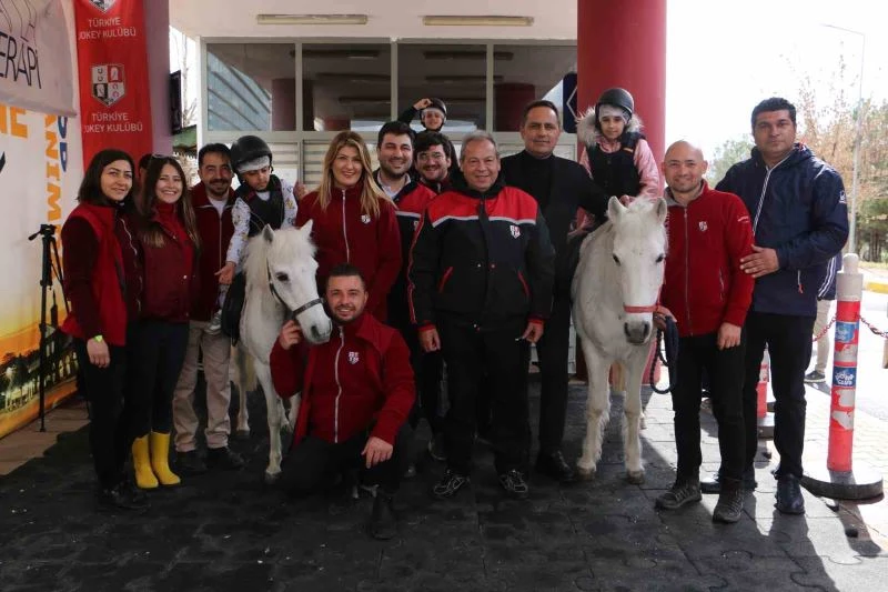 "Türkiye Jokey Kulübünün sosyal sorumluluk projelerinden biri olan atla terapi, Pony Clup tırlarıyla birlikte depremden etkilenen illeri geziyor. Depremden etkilenen çocuklarımızın özellikle psikolojik olarak da hayatlarına katkıda bulunmak istedik. Çocukların psikolojilerini bir nebze de olsun düzeltmek amaçlı il il gezmekteyiz. Çocuklarımıza at ile terapi çok önemlidir. Çocuklarımızda atla terapi ile ilgili gördüğümüz şeyler, onların hayat ile ilgili bağ kurmalarını sağlamak ve güvenli iletişim kurmalarını sağlamasında faydalı olmaktadır. Çocukların vücudunda oluşan psikosomatik bozukluklarına biraz da olsun fayda sağlamayı amaçlıyoruz. Terapi atımız ve terapi ekibimizle birlikte Diyarbakır’dayız. Çocukların bu dönemde daha fazla içlerine kapandığını görmekteyiz. Deprem bölgelerinde aynı şeyleri gözlemlerdik. Çocukların bu sorununa çözüm bulmak amaçlı biz de sahaya indik. Çocuklar atın vücudunu hissetmeye başlayınca, kendi vücudunu da hisseder. Çocukların psikolojik sorunlarına katkıda bulunuyoruz."