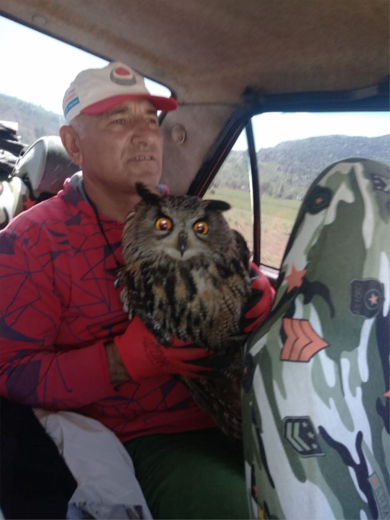Konu hakkında açıklama yapan Hasan Çakmak, “Bahçemde çalıştığım esnada komşum Akif Bulut, gelerek, bahçe tellerinde kanatları takılı durumda baykuş olduğunu bildirdi. Ben de eldivenlerimi ve penseyi alarak komşumun bahçesine giderek baykuşu bulunduğu yerden telleri keserek kurtardım” dedi.