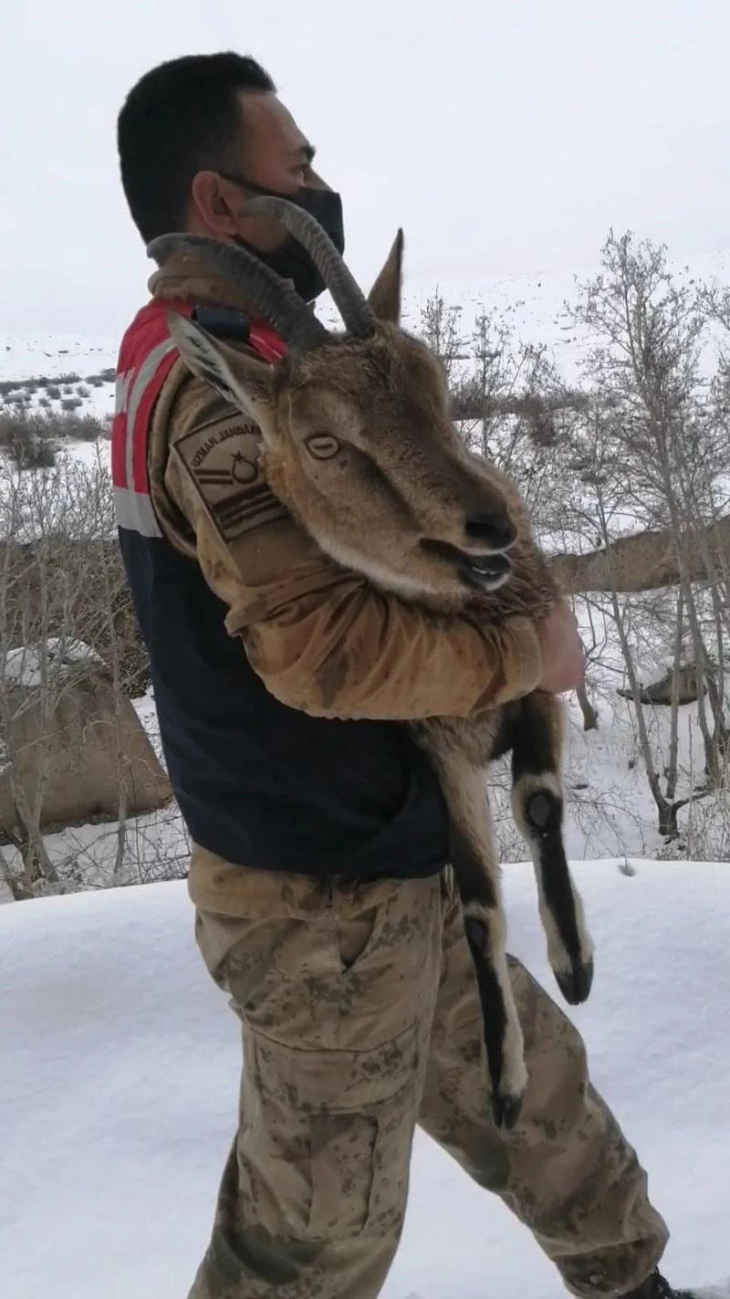 Tunceli’de jandarma ekipleri tarafından dağdan indirilen yaralı yavru dağ keçisi koruma altına alındı.