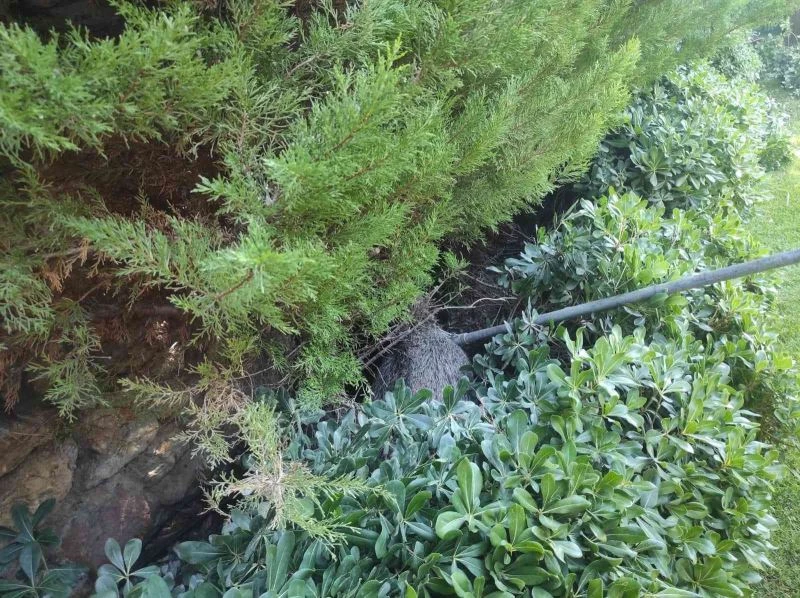 İkamet sakinlerinden Emel Nemutlu, “Sabah köpeklerin sesi ile uyandık. Bizim arka bahçe kapısı dağa açılıyor. Domuzlar buraya hep gelir, biz onlara su koyarız, besleriz, yemek artıkları koyarız. Sabah bahçenin de içindeydi. Durumu ihbar ettik. Hayvanın sağ arka ayağı kırık, hareket edemiyor. Biz onu dışarı çıkartacaktık, çıkamıyor. Sağ olsun belediyeden ekip geldi. Daha önce de evin yakınlarına domuz gelirdi ama bahçeye hiç girmezdi. Sanırım bu kez can havliyle geldi. Ayağı sanırım dağda kayalıkta kırılmış "dedi.