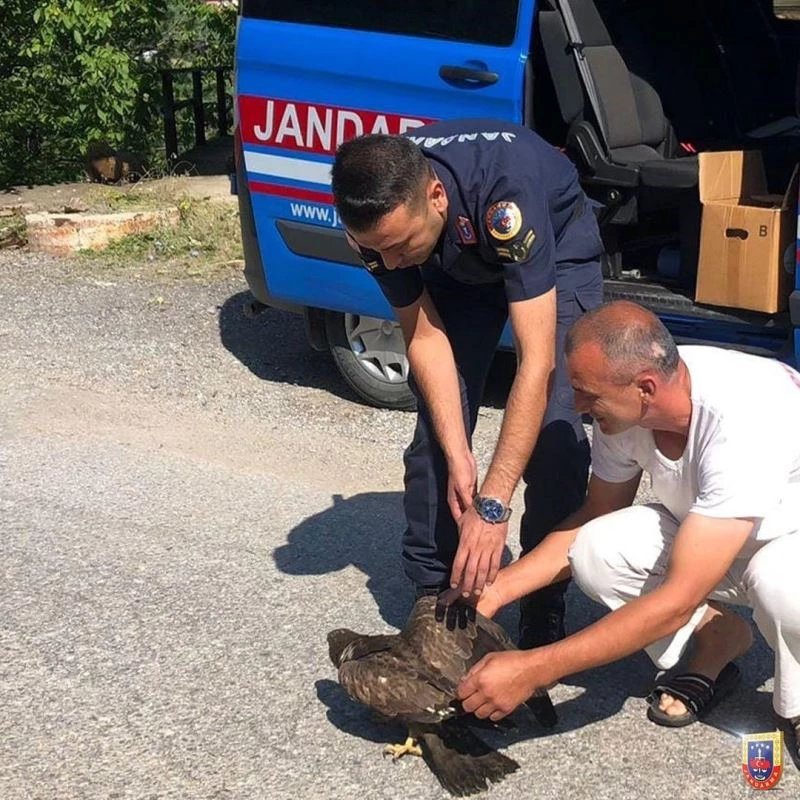 DÜZCE – Düzce Jandarma Komutanlığı ekipleri, ormanda devriye attığı esnada buldukları yaralı kartalı tedavi edilmek üzere ilgili birimlere teslim etti.