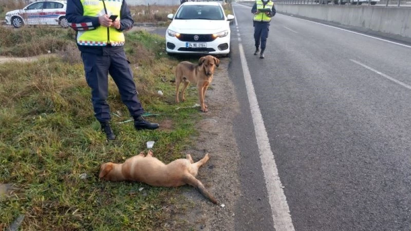Tekirdağ’ın Çerkezköy ilçesinde arabanın çarptığı sahipsiz köpeğe jandarma ekipleri sahip çıktı.