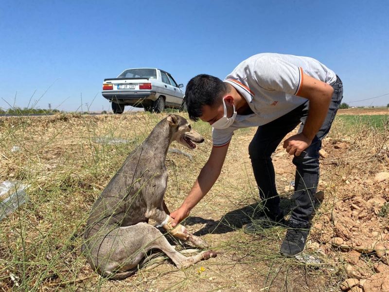 Edinilen bilgiye göre olay, Suruç ilçesine bağlı Pınarbaşı Sokak yakınlarında yaşandı. Zonguldak’tan iş amaçlı Şanlıurfa’ya gelen Serken Bayraktar, yolun ortasında tazı ırkından bir köpeğin yaralı halde yattığını gördü. Köpeği kucağına alan Bayraktar, yol kenarına götürüp internet üzerinden bulduğu telefonla ilçede görev yapan Veteriner Hekim Faruk Çakır’a ulaştı. Köpeğin yaralı olduğunu söyleyen Bayraktar, veterinerden yardım istedi. Olay yerine giden Veteriner Hekim Faruk Çakır, köpeğin kırılan ayağına tampon uygulayıp sargı bezi ile sardı. Daha sonra köpeği kucağına alıp yol kenarında bulunan bir ağacın gölgesine götürdü. Bir süre gölgede bekletilen yaralı köpek, olay yerine giden Suruç Belediyesi’ne ait araçla alınarak tedavi edilmek üzere kliniğe götürüldü.