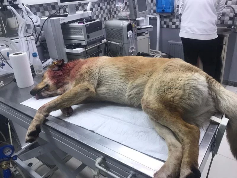 Başka köpeklerinin saldırması nedeniyle kulağında ve boynunda açık yaralar bulunduğu tespit edilen köpeğin tedavisine başlandı.