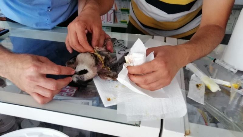 Veteriner hekim İbrahim Gökçe tarafından yaraları dezenfekte edilen kuşun kırık olan kanadı tedavi edilmek üzere Balıkesir Üniversitesi Veterinerlik fakültesine teslim edildi. Veteriner hekim Gökçe yaptığı açıklamada “ Yaralı kuşun dezenfekte işlemini gerçekleştirdik. Oluşan kurtları temizledik. Ancak kanadı kırık gözüküyor. Röntgen ve tedavisi için Balıkesir Üniversitesine göndereceğiz” dedi.