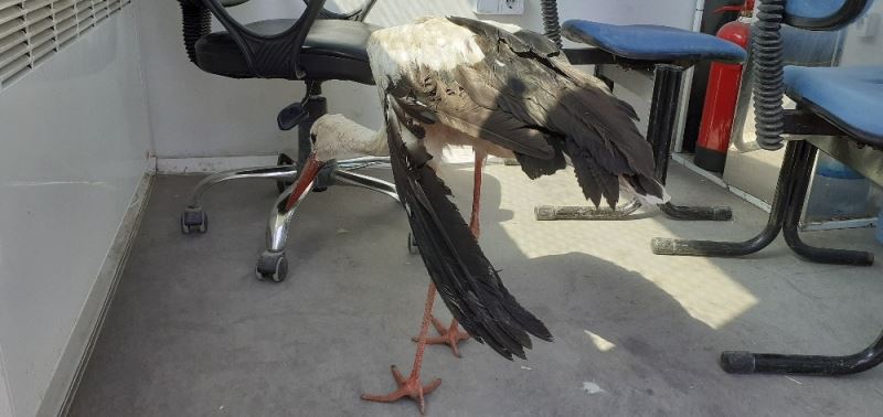 Kahramanmaraş’ın Elbistan ilçesinde kontrol noktası yakınında polisler tarafından bulunan yaralı leyleğe şefkat eli uzandı.