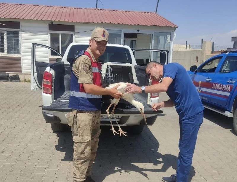 Muş’ta jandarma ekipleri tarafından yaralı olarak bulunan leylek, tedavi altına alındı.