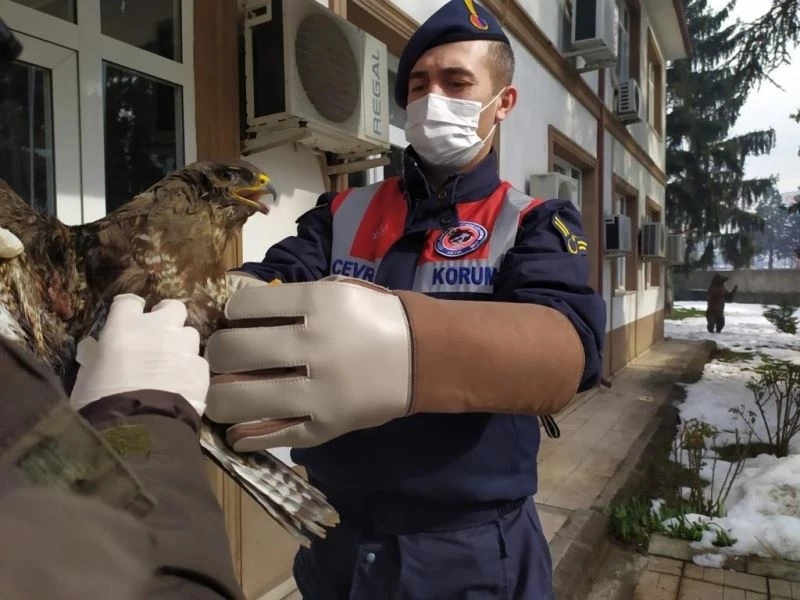 DÜZCE – Jandarma Çevre Doğa ve Hayvan Koruma timi yaralı olarak bulunan Şahin’i tedavisini yaptırıp Doğa Koruma ve Milli Parklar ekiplerine teslim ettiler.