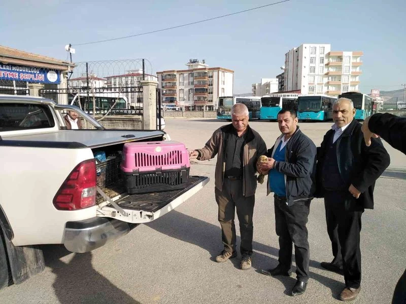 Doğa Koruma ve Milli Parklar Şube Müdürlüğü ekipleri, şoförden yaralı kızıl şahini alarak veteriner hekim tarafından tedavisine başlanıldı.