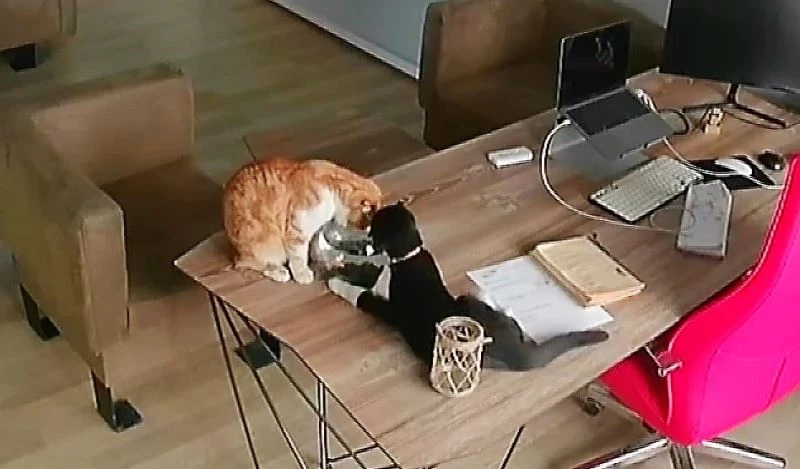 Denizli’de özel bir reklam ajansı yöneticisi olan Murat Çeşme, ofisinde balık beslemek için akvaryum kurdu. İçerisinde 2 adet balık beslemeye başlayan Çeşme, ofiste baktığı 2 kediyi de hesaplayarak kendi odasının kapısını kapatarak iş arkadaşlarının yanına çıktı. O sırada odaya iş arkadaşı uğradı, ancak kapıyı açık unuttu. Bu sırada ofiste dolaşan kedilerden Leo kapının aralığından girerek akvaryumdaki kediler ile oynamaya başladı. Ardından yanına gelen diğer kedi Ceo ile birlikte akvaryumda bulunan sudan biraz içtikten sonra balıklar ile oynamaya başladılar. Leo birkaç hamle yaparak akvaryumu yerinden oynatmayı başardı. İlk denemesinde akvaryumu biraz kaydırdı. Leo isimli kedi son hamlesinde akvaryumun üstüne hızla koşmasıyla birlikte masadan düşürerek kırdı. Daha sonra sesi duyan Murat Çeşme, ofisine geldiğinde karşılaştığı manzara karşısında şaşırdı kaldı. Birkaç dakika yerde kalan balıkları küçük bir kap içerisine koyan Çeşme, balıklarını da kurtardı. Güvenlik kamerasını inceleyen Çeşme, kedileri Ceo ve Leo’nun yaptıklarını izledikten sonra şaşırdı.