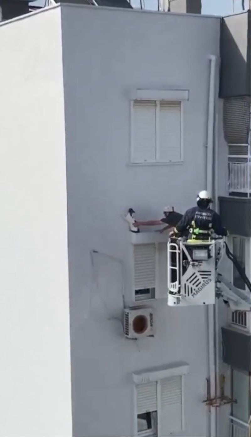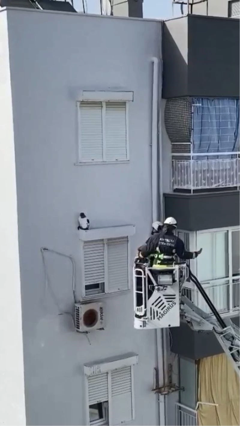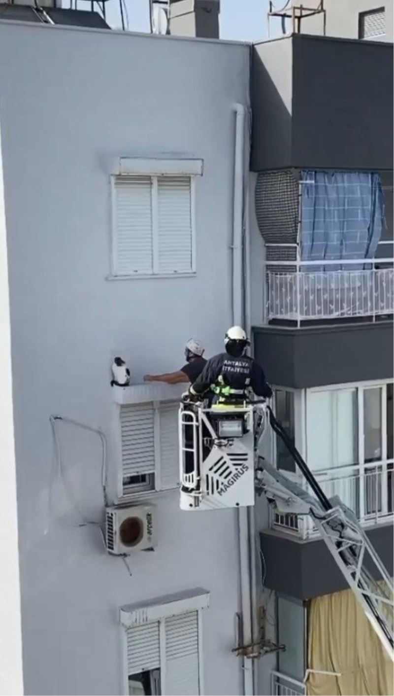 Antalya’da bir apartmanın 8’inci katındaki pencereden bir alt kattaki pencerenin panjur yatağına düşerek mahsur kalan kedi, itfaiye ekiplerince kurtarıldı.
