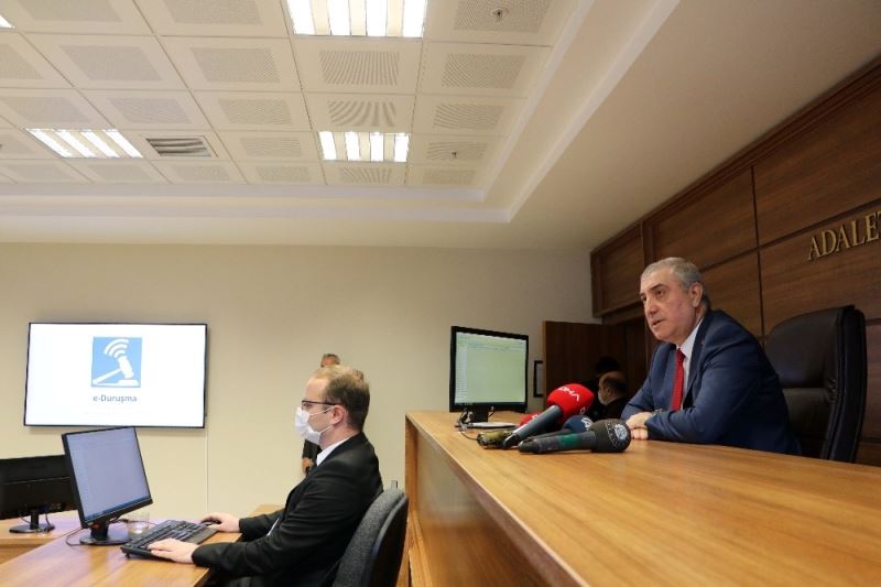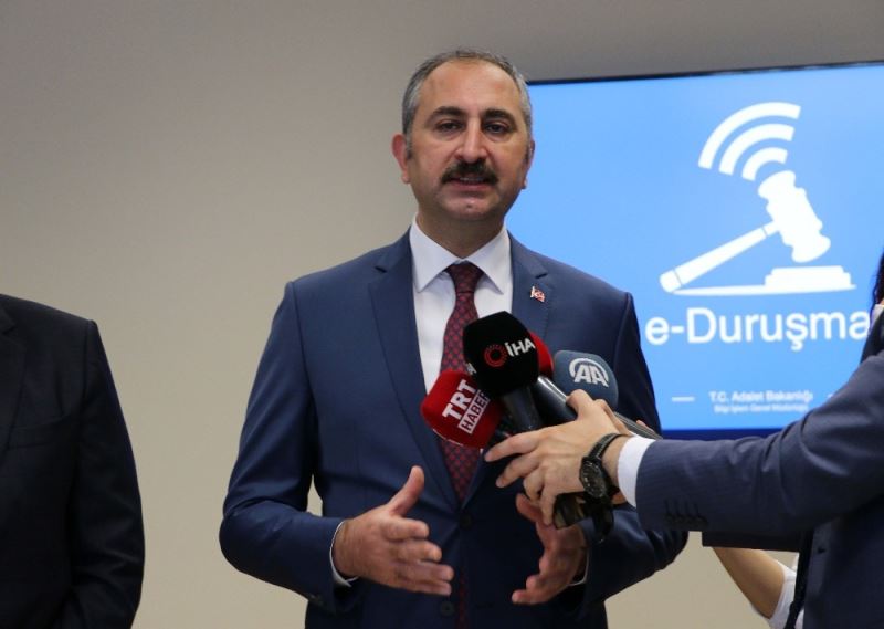 Korona virüs tedbirleri kapsamında duran yargısal faaliyetlerin dün tekrardan başladığını anımsatan Gül, vatandaşları maske, sosyal mesafe ve hijyen kurallarına uymaları konusunda uyardı. Yeni dönemin adının "yeni normal" olsa bile değişmeyen tek şeyin "reform iradeleri" olduğunu anlatan Gül, "Bugün de bu reform iradesi çerçevesinde önemli bir gelişmeyle karşınızdayız. E-duruşma ile Afyon, Edirne ve Çorum Baro Başkanlarımıza buradan bağlandık. Buradaki temel yaklaşımımız, avukat arkadaşlarımız duruşmaya bulundukları yerden bağlanabilecekler. Bu test başarıyla gerçekleşti. Bir kaç dakikalık duruşma için 600 kilometre öteden gelip duruşmaya girip tekrardan dönen uygulamalar sona erecek. Baro başkanlarımız sanki buradaymış gibi çok güzel seslerini duyduk. Duruşmaya katılıp beyanlarını dile getiriyorlar ve bu çerçevede usul ekonomisi anlamında önemli bir devrim ve reform gerçekleşmiş olacak. Özellikle Antalya’da bir baro mensubu arkadaşımız, uçakta karşılaştığımızda ’Bakanım geldim. Hakim izindeymiş, iki günüm bunun için gitti ve dönüyorum’ dedi. Mesleğin içinde karşılaştığımız hepimizin içinde bir ukdeydi bu. Testin bugün başarıyla sonuçlanması bizim için heyecan verici" diye konuştu.