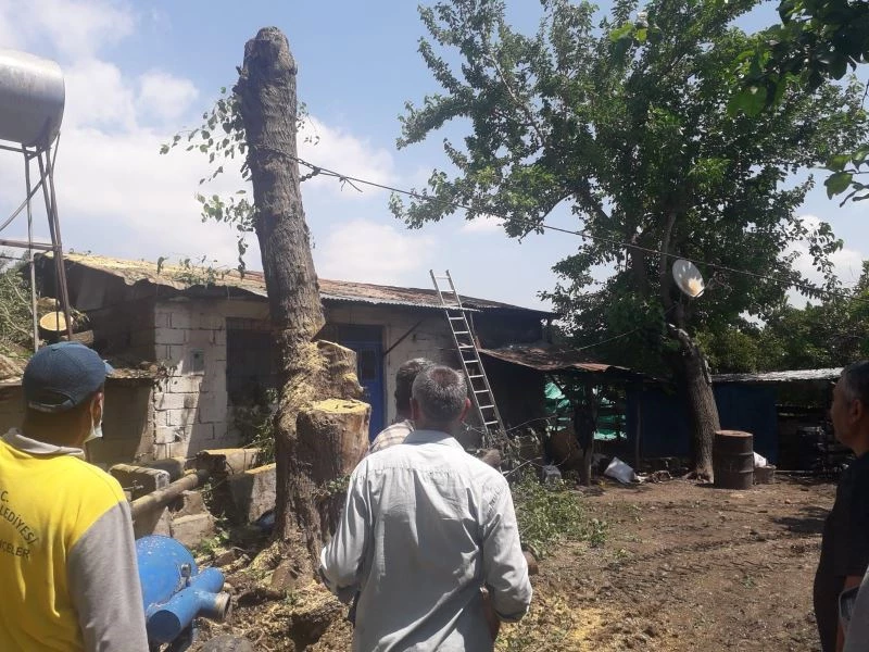 Dün akşam Pekmezci Mahallesi’nde etkili olan şiddetli fırtına nedeniyle Köse ailesinin evinin üzerine dut ağacı devrildi. Şans eseri ölen ya da yaralanan olmadı.