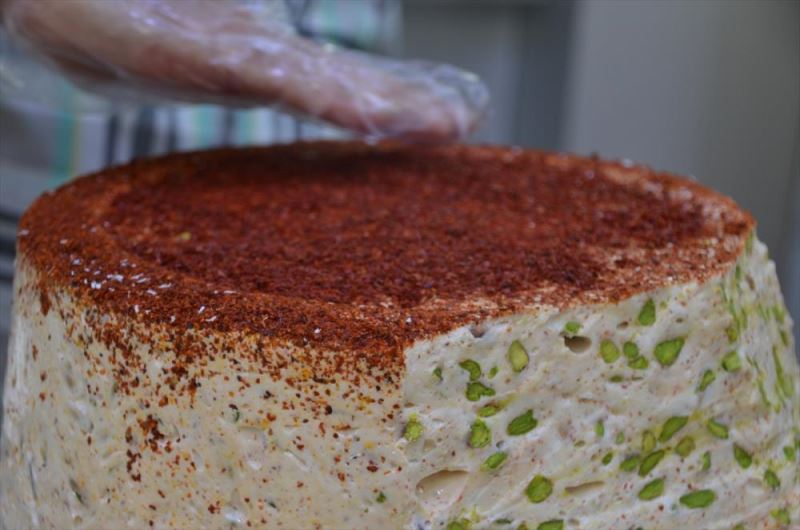 KAHRAMANMARAS (AA) - ÖMER FARUK SALMAN - Kahramanmaras'ta yarim asirdir lokum ve sekerleme üretimi yapan Ökkes Nagas, pul biberle ürettigi fistikli lokumu müsterilerinin begenisine sundu.