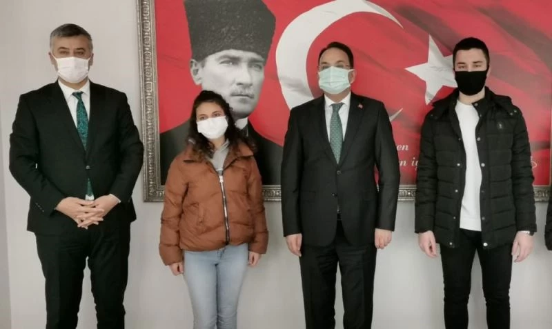 Dereceye giren öğrenciler okul idarecileri ile birlikte kaymakamlık makamında kabul eden Kaymakam Cevdet Ertürkmen, öğrencileri tebrik ederek ödüllerini verdi.