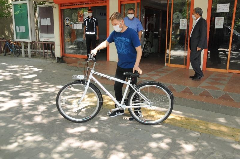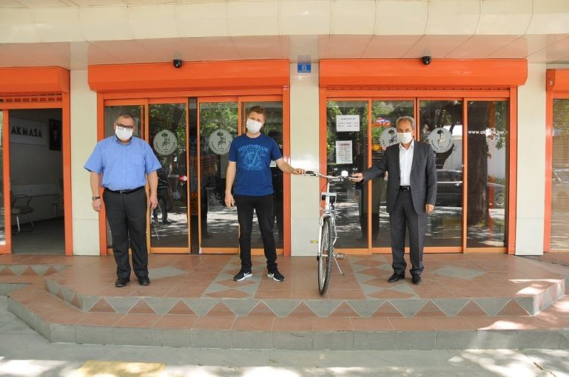 Konuşmaların ardından Belediye Hizmet Binası önünde Başkan Akkaya tarafından Yeşim Cevlan’ın kazandığı bisiklet eşi Dursun Cevlan’a teslim edildi.