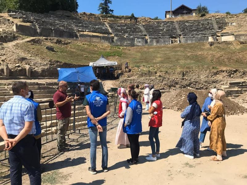 Yarışmaya katılacak gençler Antik kenti incelemede bulundu