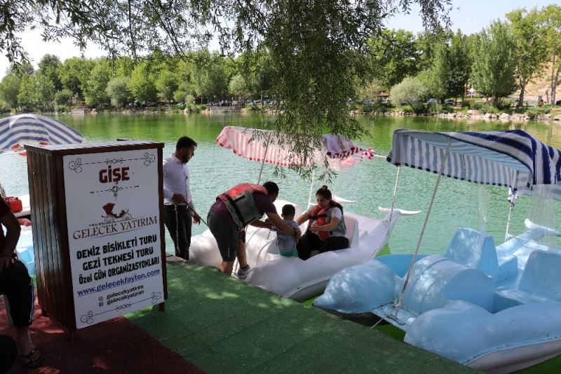 El hijyeni ve dezenfektana önem verilen su bisikletinde, vatandaşlar doğa ile iç içe parkta korona virüsün stresini atıyor.