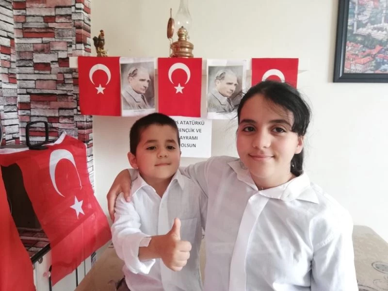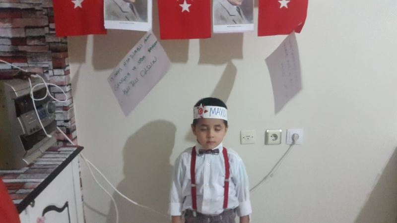 Öte yandan minik Berat’ın evi Atatürk fotoğraflarıyla ve Türk bayraklarıyla donattığı görülürken, hayali bir sahne de oluşturduğu görüldü. Berat, ablası Senanur Yılmaz’ın takdimiyle önce bayrağı öpüp ardından 19 Mayıs şiirini bir çırpıda okuyarak yürekleri kazandı.