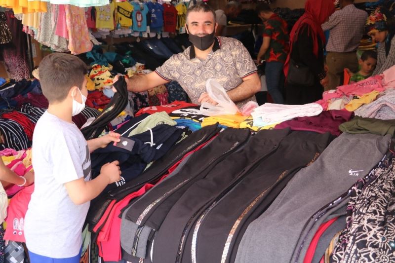 Sokağa çıkma izninde çocuğunun destek olarak yanında çalıştığını söyleyen baba Mehmet Karaman, “3 aydır çocuklar evde otura otura sıkılıyordu, dayanamıyorlardı. Bugün de serbest olduğu için ben de dükkana getirdim. Bugün Çarşamba günü çocuklara 3-4 saatlik fırsat verildi. Hem bana yardım etmeleri için hem sıkıntıları gitsin diye hem de bayram yoğunluğunda bize biraz yardımcı oluyorlar. Kısıtlama sonrası vatandaşlar bayram alışverişi için dışarı çıkmış çocuklarına bayramlık alıyorlar. Benim çocuk da bize yardımcı oluyor burada” ifadelerini kullandı.
