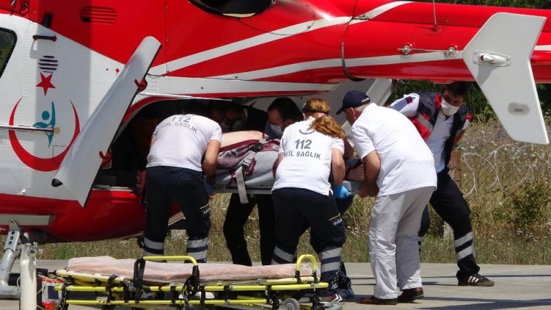 Yaşlı adamın yardımına ambulans helikopter yetişti