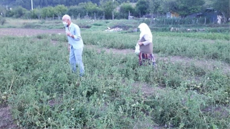 Kış aylarında 5 litrelik su şişelerini keserek üzerini kapattıkları domates fidelerini donmaktan koruyan yaşlı çift, sera içerisini ısıtmak için her sera için 5’er adet tüp kullandıklarını, ancak mahsulü hasat edecekleri döneme çok az bir süre kala, 20 dakikada yaklaşık 5 ton domateslerinin dolu yağışıyla tamamen telef olduğunu söylediler.
