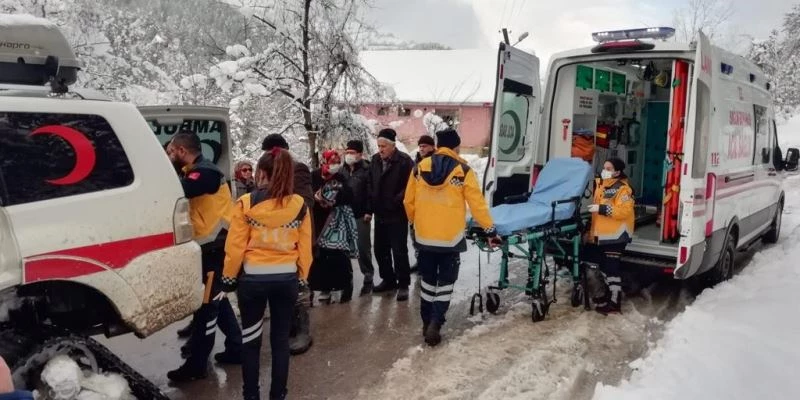 Bartın’da yolu karla kapanan köydeki yaşlı hastaya UMKE ekipleri paletli ambulansla ulaştı.