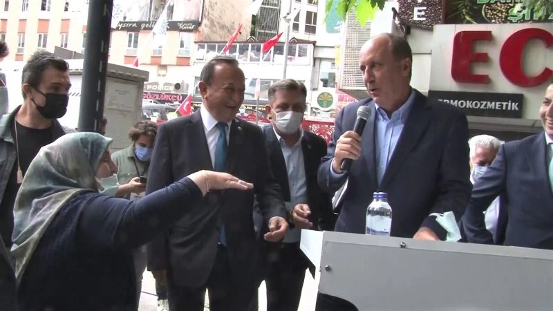 Daha sonra vatandaşlara konuşma yapmak isteyen İnce’ye, yaşlı bir kadın yaklaşarak elini öptürmek istedi. Korona virüs dolayısıyla elini öpmek istemeyen İnce, kadının ısrarı üzerine elini öptü. Daha sonra İnce’nin vaatlerini yerine getirmesi için söz isteyen yaşlı kadın, seçimde Memleket Partisi’ne oy vereceğini söyledi.