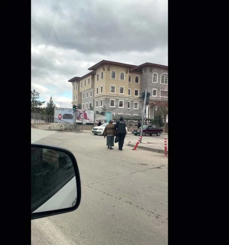 Yozgat’ın Yerköy ilçesinde yolun karşısına geçmeye çalışan yaşlı kadına polis yardımcı oldu.