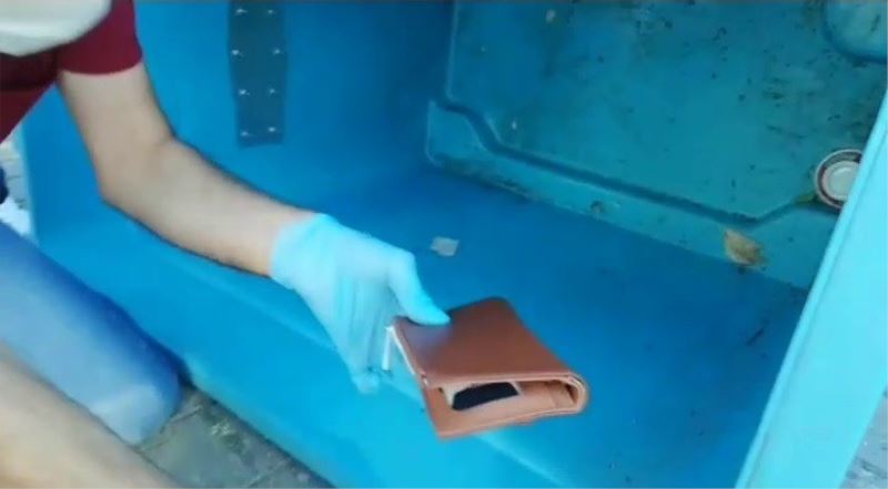 Öte yandan, güvenlik kamerasında kapkaççının cüzdanı çaldıktan sonra kaçması ve ekiplerin cüzdanı çöp konteynerinden çıkartması yer alıyor.