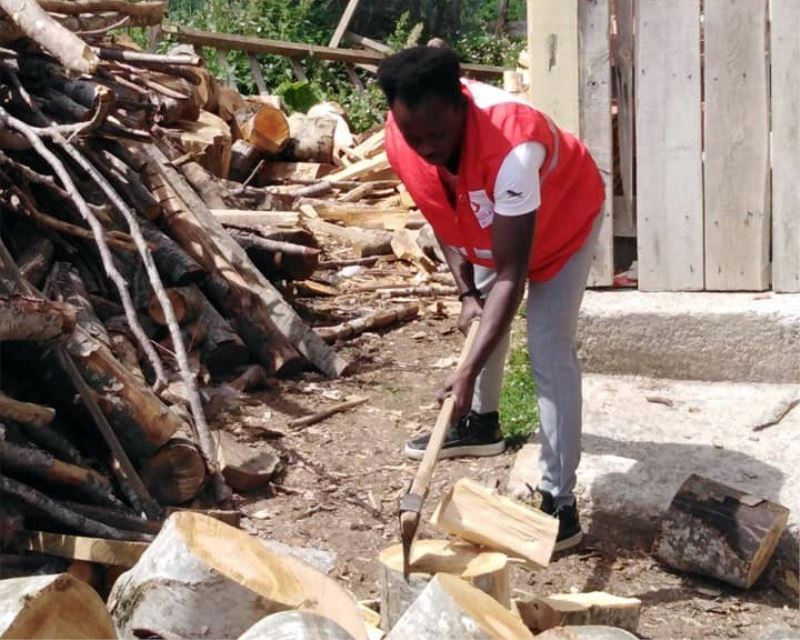 Yardım çalışmaları kapsamında Amasya’nın Taşova ilçesi Kavaloluoğlu köyünde Kızılay ekipleri kapının önünde odunlarını kırmaya çalışan Havva Aslan’ı ziyaret etti. Kızılay gönüllüleri baltayı ellerine alıp bütün odunları kırdı.