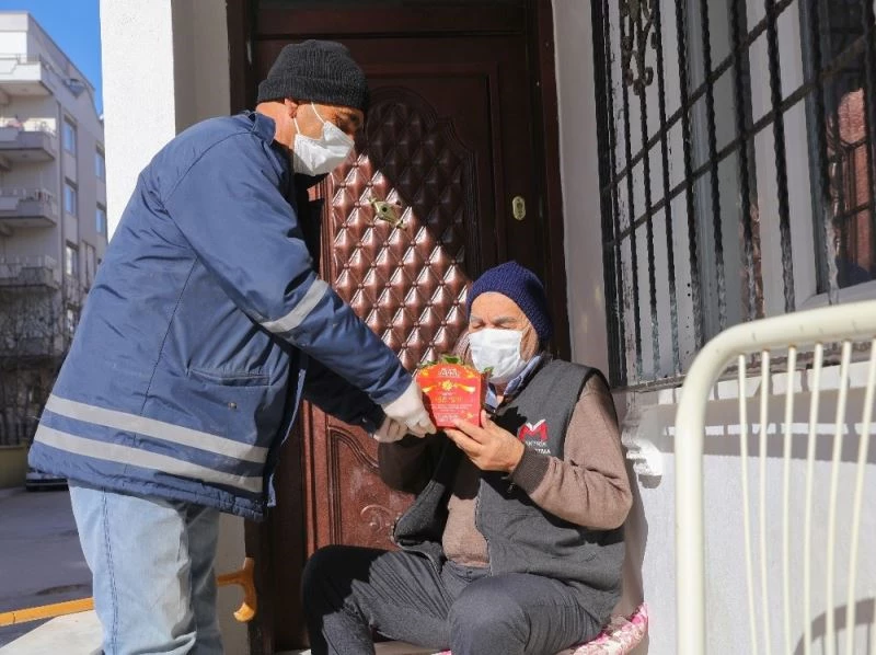 Gaziantep Büyükşehir Belediyesi tarafından salgınla mücadelede risk grubunda bulunan, kent genelindeki 65 yaş üstü vatandaşlar için yılbaşı öncesi çiçek dağıtıldı.