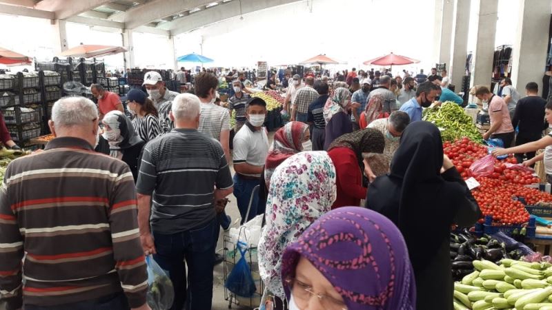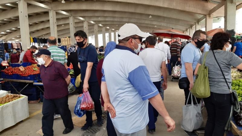 Yaşlılarda pazara akın edince sosyal mesafe hiçe sayıldı
