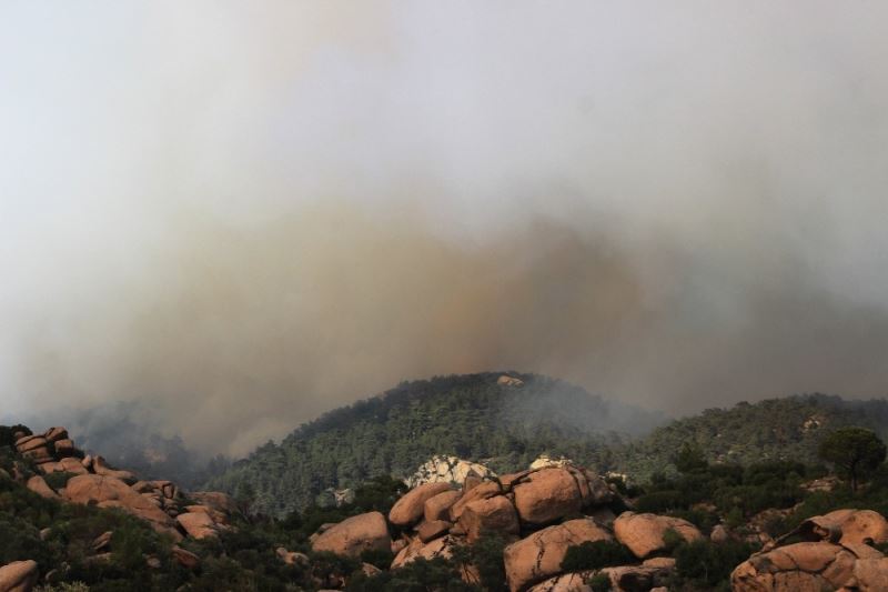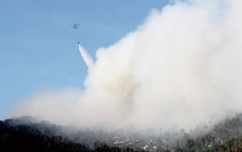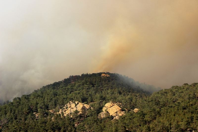 Helikopterler havadan sürekli olarak yanan sahanın batı bölümüne su atarken, alevlerin önü kesilmez ise sık çam ormanlarının bulunduğu bölgede gece boyunca sürmesi bekleniyor.