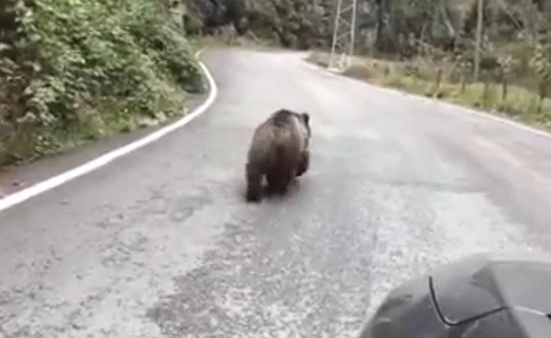 Trabzon’un Yomra ilçesine bağlı Kılıçlı mahallesinde ormanlık alandan karayoluna indiği tahmin edilen yavru ayı cep telefonu kamerasına yansıdı. Otomobil ile seyir halindeyken bir vatandaş tarafından karayolunda yürürken görülen yavru ayı vatandaşın tepkisine aldırış etmeden yoluna devam etti. Otomobilin sürücüsü direksiyonu yavru ayının önüne kırarak ormanlık alana doğru gitmesine sağlamaya çalışsa da yavru ayı karayolundan gitmeyi tercih etti. Bir süre yavru ayıyı korumak için yanından giden otomobil sürücüsü yolun ortasından giden yavru ayıya ıslık çalsa da yolundan çeviremedi. Karayolunda araçlara aldırış etmeden yürüyen yavru ayı bir süre sonra gözden kayboldu.