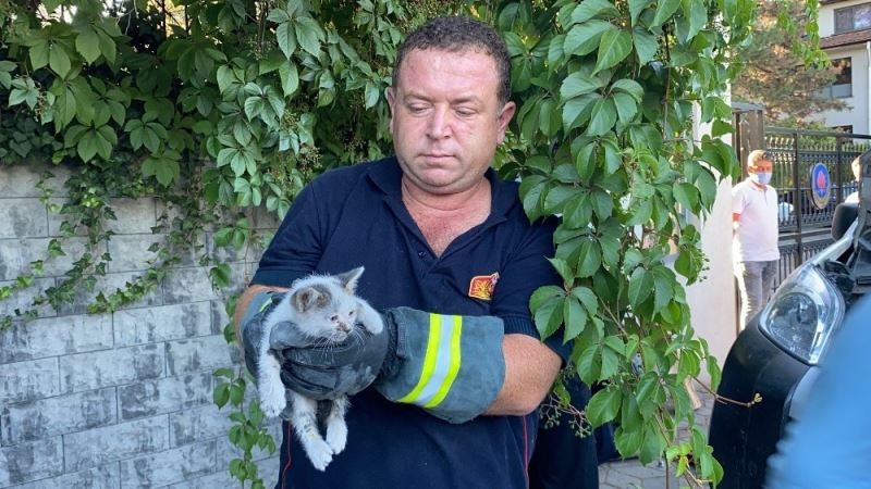 Yavru kedi sıkıştığı yerden telefonla kedi sesi dinletilerek kurtarıldı