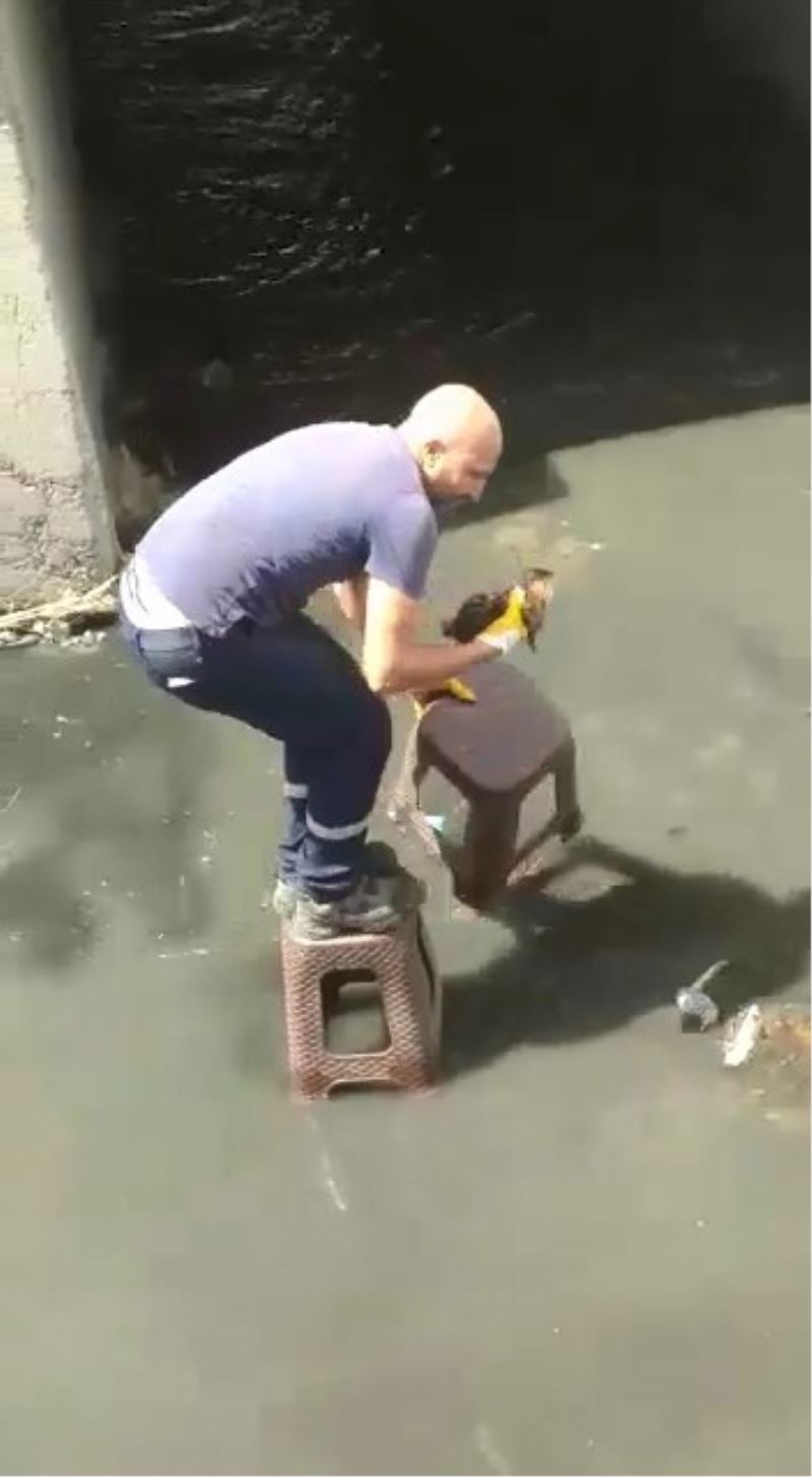 Kocaeli’nin Dilovası ilçesinde Abdulmenaf Çelik isimli hayvansever vatandaş, yavru bir kedinin kanalizasyonda sesini duydu. Mahsur kaldığını anlayan vatandaş kediyi kurtarmak için bir merdiven yardımıyla kanalizasyon çukuruna indi. Yavru kedinin kurtulması için seferber olan Abdulmenaf Çelik ‘in aklına şaşırtıcı bir çözüm geldi. Ayakları, kanalizasyon içerisindeki çamura saplanmasın diye taburelerin üzerine basarak kediyi kısa sürede kurtaran vatandaş, yavru kediyi kanalizasyondan çıkardı. Sağlık durumunun iyi olduğu öğrenilen yavru kedi, tekrar doğal ortamına bırakıldı.