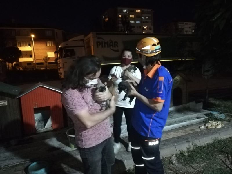Eskişehir’de Porsuk Çayı kenarında bulunan yavru köpekler, suyun yükselmesi sonrasında ölmekten son anda kurtarıldı.