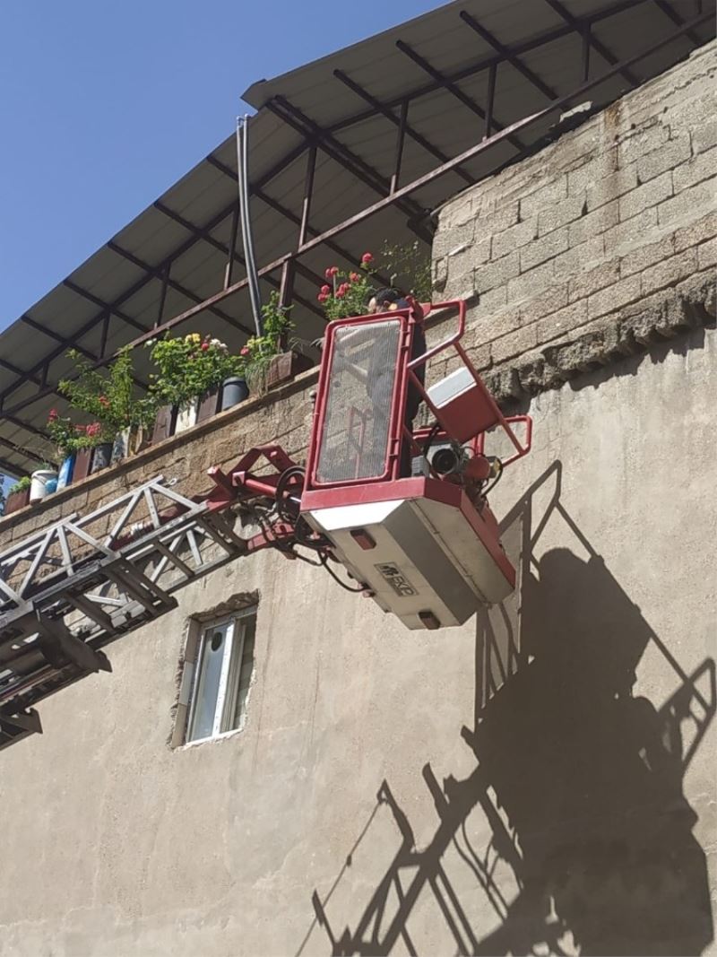 Kahramanmaraş’ta bir binanın duvarları arasında mahsur kalan yavru serçenin imdadına, itfaiye ekipleri yetişti.