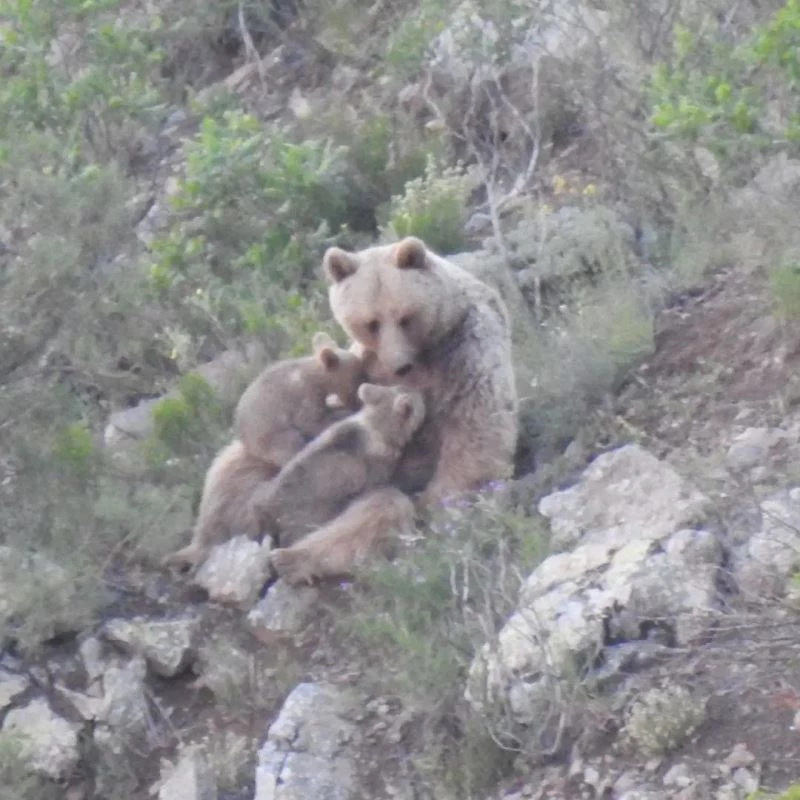 Gümüşhane’de doğa gezgini Muhammet Tutar merkeze bağlı Canca Mahallesi’nin yüksek kesimlerinde doğada nadir görülen bir olaya şahit oldu. Doğada yabani hayvanların fotoğraflarını ve görüntülerini çeken Tutar, yavrularını korumak için çok saldırgan davranışlar sergilediği bilinen anne ayıların, yavrularını emzirdiği anları kayıt altına aldı.