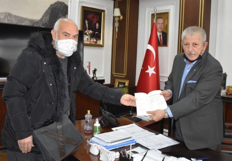Amasyalı oyuncu ve şair Yavuz Çetin, ziyarette bulunduğu Amasya Belediye Başkanı Mehmet Sarı’ya yeni çıkan şiir kitabını hediye etti.