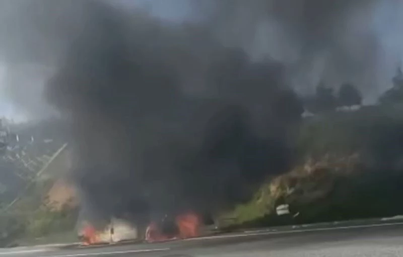 Yavuz Sultan Selim Köprüsü kavşağında yanan araç alev topuna döndü