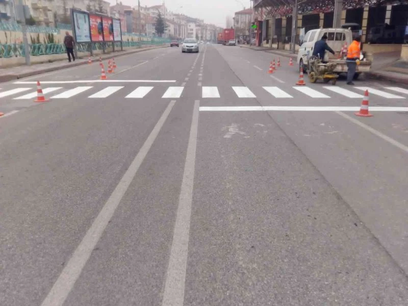 Daha güvenli bir trafik ve yaya güvenliği için olmazsa olmaz yaya geçit çizgileri Kütahya Belediyesi Ulaşım Hizmetleri Müdürlüğü ekipleri tarafından tamamlanıyor.
